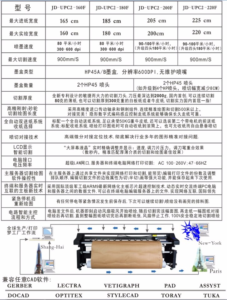 錦德UPC 寬幅服裝噴墨切割一體機8大五星級體系化: