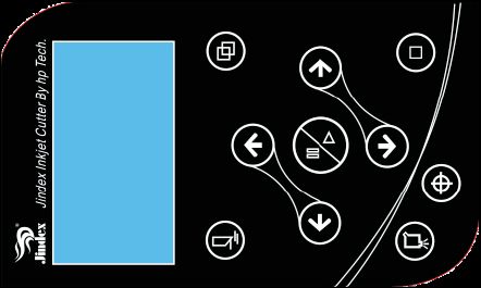 ⑧Large liquid crystal real-time dynamic display status of inkjet and cutting, and in this panel, you can adjust the function of knife pressure, cutting knife overlap, inkjet test, reset, stop, paper feed, and paper break after cutting.