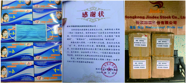 開年以來,錦德公司積極配合政府工作,積極響應(yīng)政府號(hào)令,深圳市錦德智能高新科技有限公司以柔性材料切割提供完整解決方案的產(chǎn)品研發(fā)及銷售,公司總經(jīng)理劉明軍先生表示:這個(gè)新型冠狀病毒肺炎出現(xiàn)的時(shí)候,我第一時(shí)間想到是我們應(yīng)該為社會(huì)做些事情。由于現(xiàn)在是在特殊時(shí)期,國(guó)內(nèi)口罩貨源緊張,立刻聯(lián)系國(guó)際友人,從國(guó)外緊急采購(gòu)近萬個(gè)越南進(jìn)口醫(yī)用口罩,援助給新橋商會(huì)及新橋街道辦,為新橋街道的疫情防控工作助力,以實(shí)際行動(dòng)踐行企業(yè)家的社會(huì)責(zé)任與擔(dān)當(dāng),盡微薄之力!