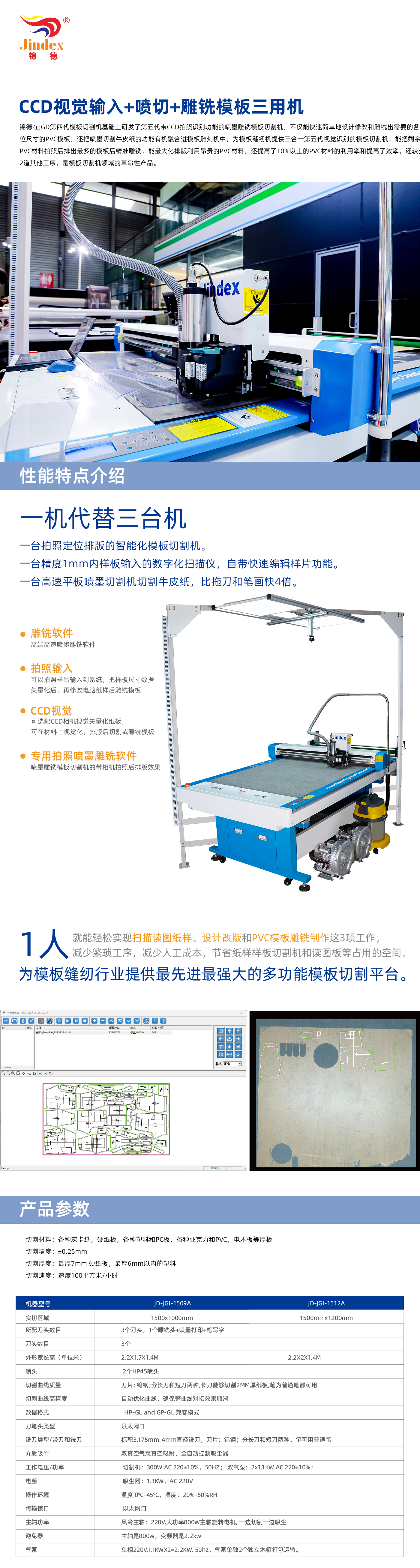 Visual Input+Inkjet Cutting+TemplateMilling three purpose machine